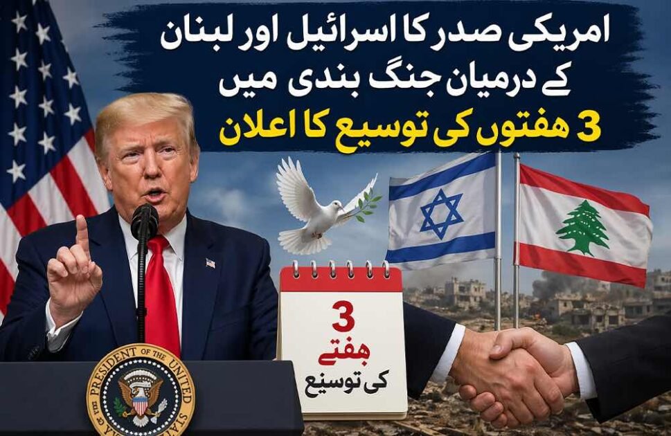 اسلام اباد ( دی خیبرٹائمز مانیٹرنگ ڈیسک ) امریکی صدر ڈونلڈ ٹرمپ نے مشرق وسطیٰ میں کشیدگی کم کرنے کی ایک اہم پیش رفت کے طور پر اسرائیل اور لبنان کے درمیان جاری جنگ بندی میں مزید 3 ہفتوں کی توسیع کا اعلان کر دیا ہے۔ وائٹ ہاؤس سے جاری بیان میں صدر ٹرمپ نے کہا کہ یہ فیصلہ خطے میں امن و استحکام کو فروغ دینے کی کوششوں کا حصہ ہے۔