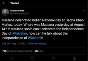 “مولانا فضل الرحمان باچاخان مرکز جانے پر گورنر شاہ فرمان کا تنقیدی ٹویٹ، میاں افتخار کا جواب” ایک تبصرہ